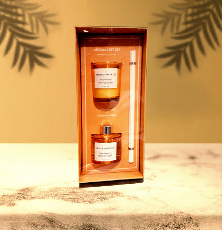 Amber & Ginger Lily – Aroma Gift Set(Scented Candle & Reed Diffuser)