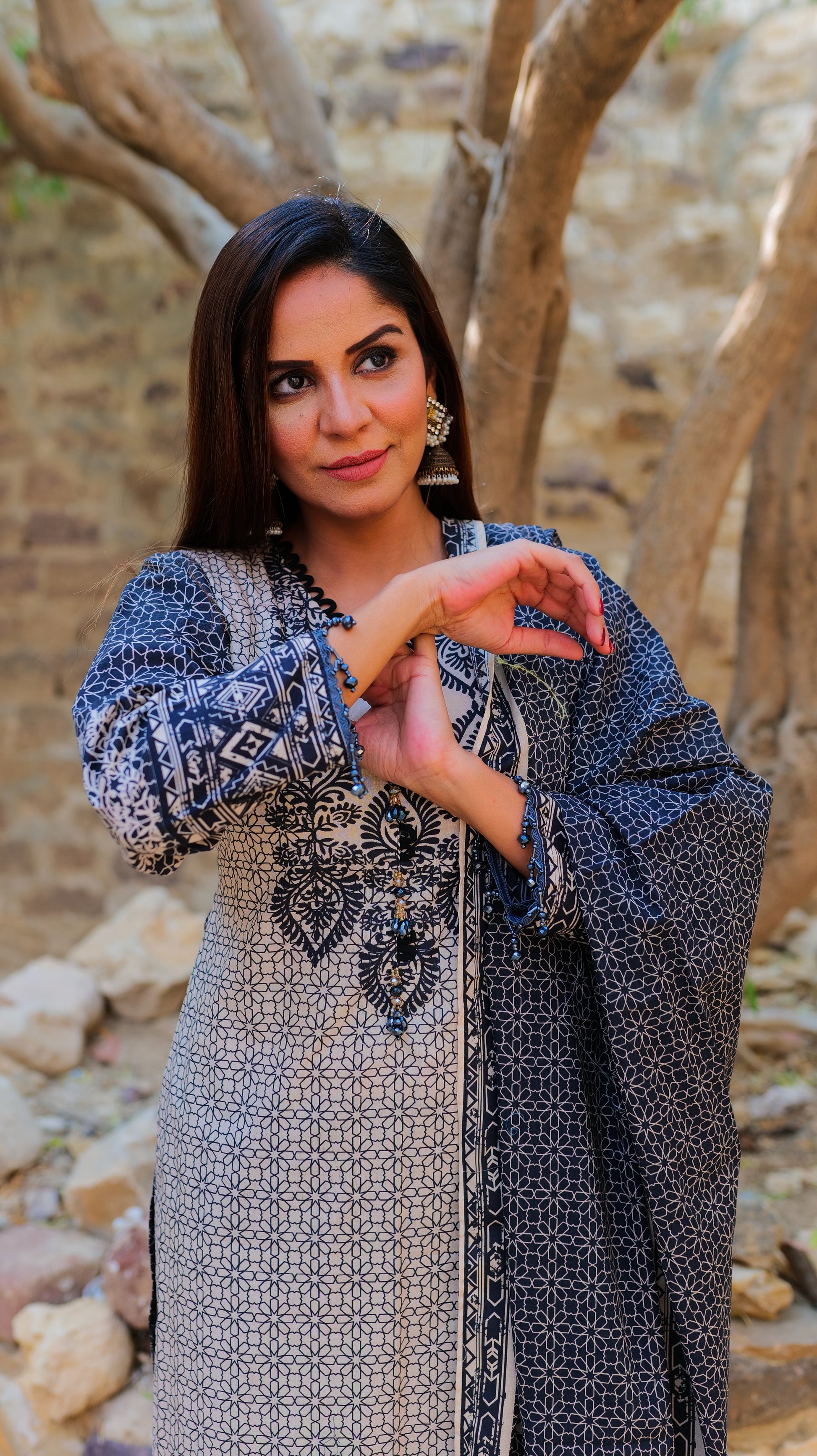 Make a bold style statement with the Hira Lari Lawn AZTEC design. Featuring striking geometric patterns and vibrant tones, this 3-piece unstitched suit offers modern elegance and breathable comfort — perfect for casual outings, festive occasions, or chic everyday wear.