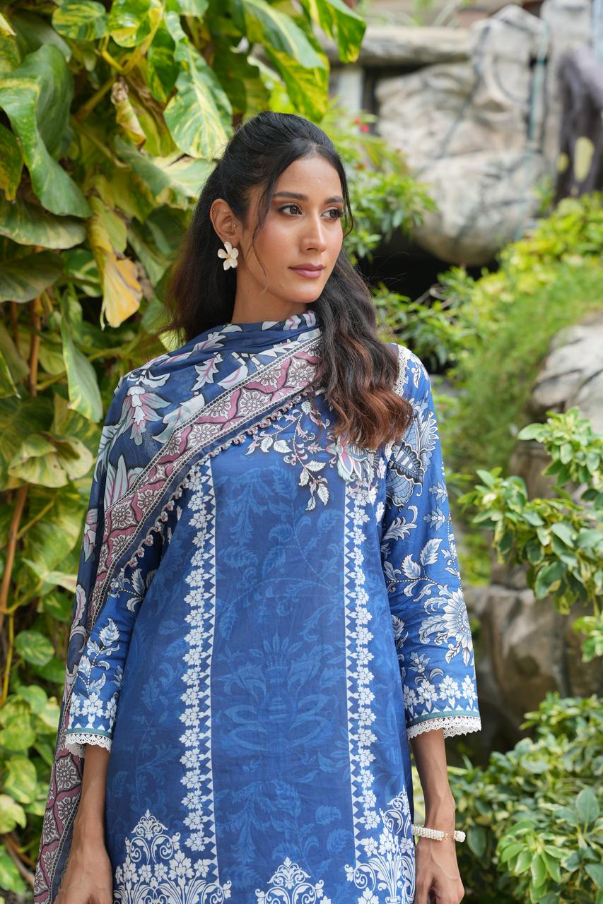 The ensemble features a striking digitally printed shirt, a coordinating trouser, and a flowing printed dupatta, creating a harmonious look that transitions effortlessly from festive gatherings to daytime elegance. Every element of Jackobean Art reflects a passion for design — bold yet graceful, modern yet timeless.