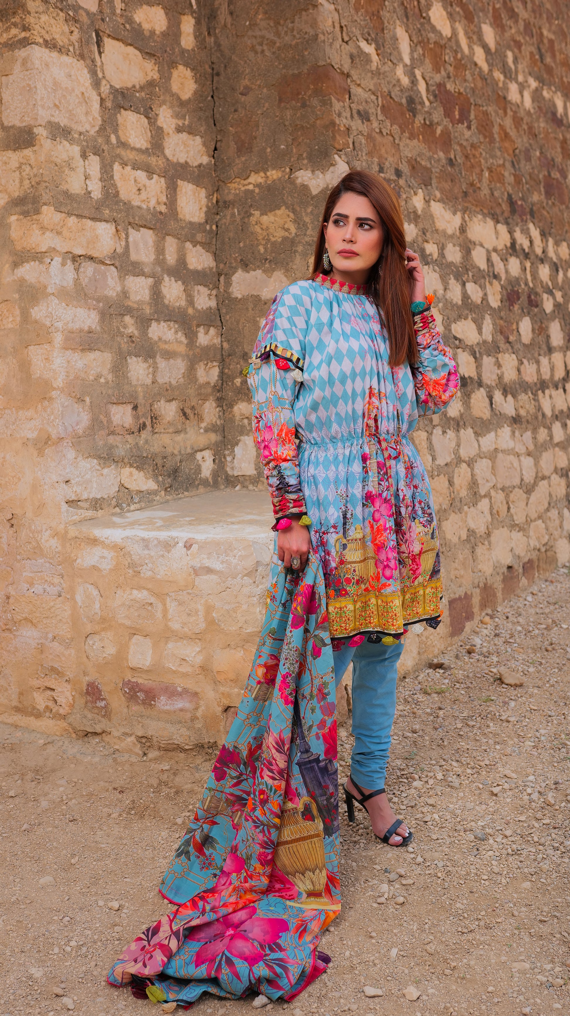 Inspired by vibrant Moroccan artistry, the Hira Lari Lawn Marakesh design features bold patterns and rich colors that make a striking statement. This 3-piece unstitched suit is perfect for the woman who loves culture-infused elegance with breathable summer comfort.